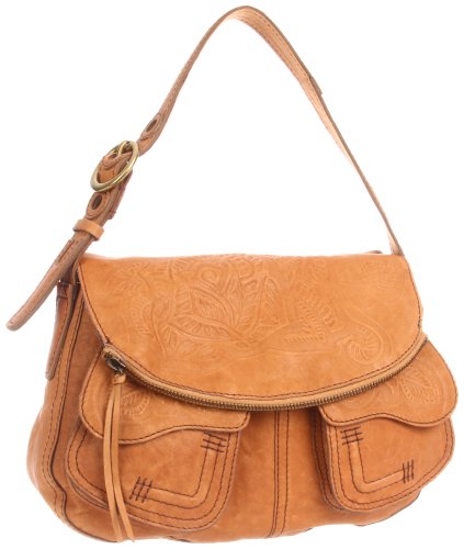 • An elegant bag that dresses up any look • Embossed leather material • Single adjustable shoulder strap • Foldover flap closure • Interior features zip pocket and open slip pockets • 14-1/4"L x 3-7/8"W x 13"H